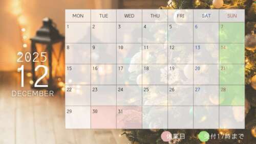 30日(火)~2026年1月3日(土)年末年始休業
