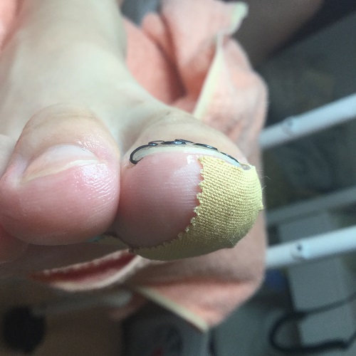 一見すると軽そうに見えるかもしれませんが、爪の端が皮膚に深く食い込んでいるのが分かります。